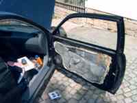 Der rechte Außenspiegel machte beim Abbau geringfügige Probleme, so dass man die ganze Türverkleidung abbauen musste. Auf der linken Seite ging der Spiegel ohne Probleme ab. |