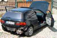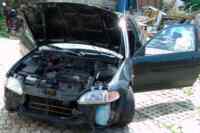 Jetzt ist fast nichts mehr dran am Civic. Der kleine Heckspoiler ist auch schon abgebaut und die Heckklappe, wie man sieht, ist wieder dran. | ||